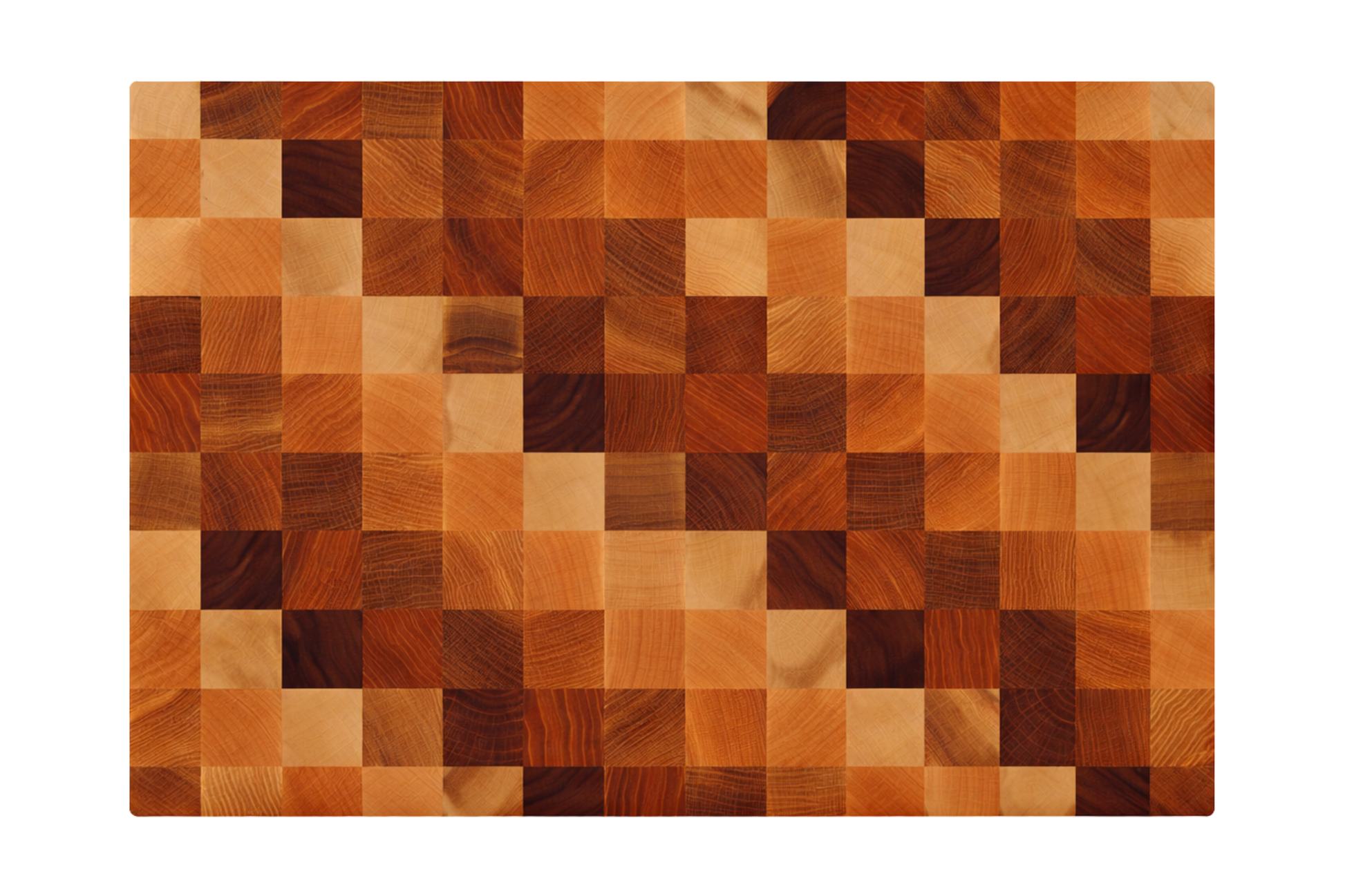 Maak kennis met de RED Pixel, een meesterwerk waarin zes uitzonderlijke houtsoorten samenkomen in een prachtig, ritmisch mozaïek. Deze kopshouten snijplank is een ode aan kleur, textuur en puur vakmanschap, een plank die niet alleen functioneel is, maar ook een visueel kunstwerk dat je keuken direct verrijkt.